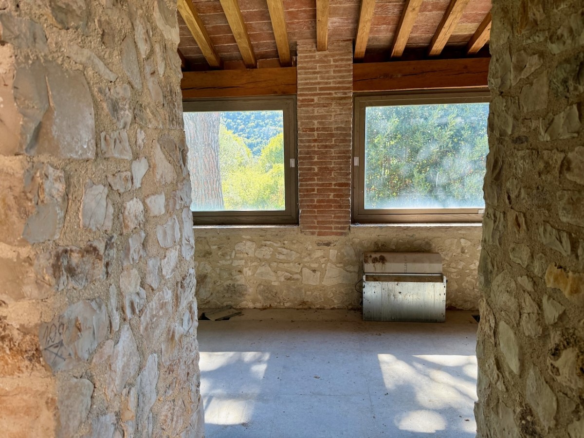 Hidden in the woods between Massa Martana and Acquasparta lies this unique property, formerly a hermitage, hence its name "Eremita". It is a small Borgo, consisting of several buildings, including a small chapel, all of which have already been completely restored structurally, and whose intended use can still be determined by the new owner. The current owner wanted to create a place that respects the former use of the buildings, a place to retreat and relax surrounded by nature, but at the same time a place equipped with all modern comforts: a Boutique Spa Resort. His project includes nine apartments/rooms for guests, a restaurant, a swimming pool and a wellness centre, as well as a communal area and a reception. During the restoration, as many of the original and characteristic features as possible were retained and high-quality materials were used. All installations, including the lighting, were concealed in the floors, leaving the walls and ceilings free of pipes and cables. The owner hopes to find a buyer who wants to take over his ideas and complete the project, but it is of course also possible to give the Borgo a different purpose. A unique property in a beautiful location with many possible uses. |