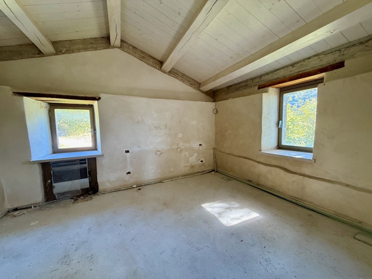 Two-storey building for tourist use: - ground floor: apartment comprising living room with mezzanine/bedroom, fireplace, bathroom and terrace; - first floor: accessible via an external staircase, loggia with storage room, apartment comprising living room with fireplace and mezzanine/bedroom, bathroom, second bedroom or kitchen. |