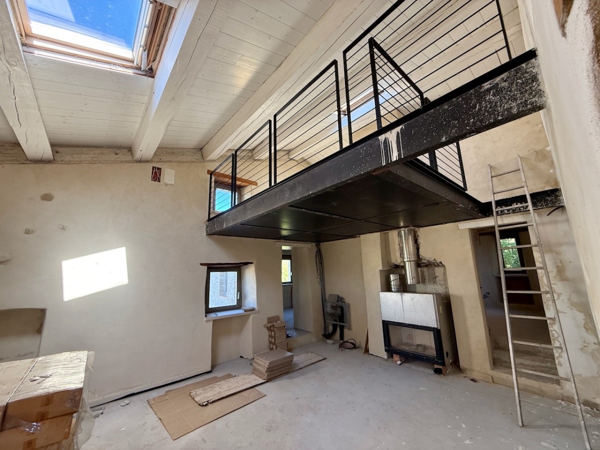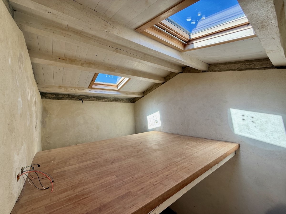 Two-storey building for tourist use: - ground floor: apartment comprising living room with mezzanine/bedroom, fireplace, bathroom and terrace; - first floor: accessible via an external staircase, loggia with storage room, apartment comprising living room with fireplace and mezzanine/bedroom, bathroom, second bedroom or kitchen. |