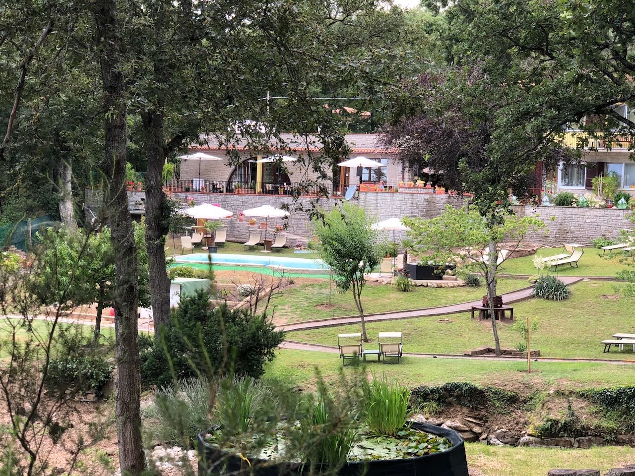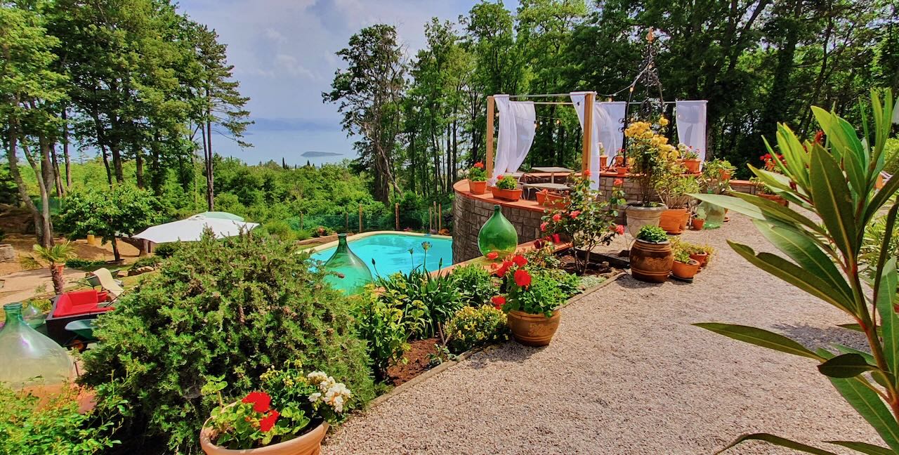 In the garden there is a beautiful swimming pool, and many sitting areas for relaxing, a vegetable garden and some woodland.