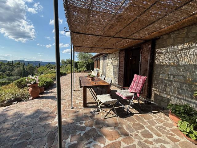 This charming stone-built farmhouse of about 390 m2 has been perfectly restored preserving most original features (wooden beams, arches, cotto floors) and yet making it very comfortable and elegant. The house is situated above a quiet and green valley near Lake Trasimeno and the Tuscan borders (Cortona). It has an arched sitting room, a veranda,  study, kitchen, a cosy breakfast room, all with French doors to the terraces and garden; 6 bedrooms (of which 3 actually used by the Bed & Breakfast), 7 bathrooms. Land 11.000 sqm.The lush,fenced gardens of about 5.500 sqm. feature a new swimming pool, an outdoor kitchen with bbq and sitting corners to relax. A perfect place for long holidays and/or renting out to guests (as a whole or as B&B, if you wish).